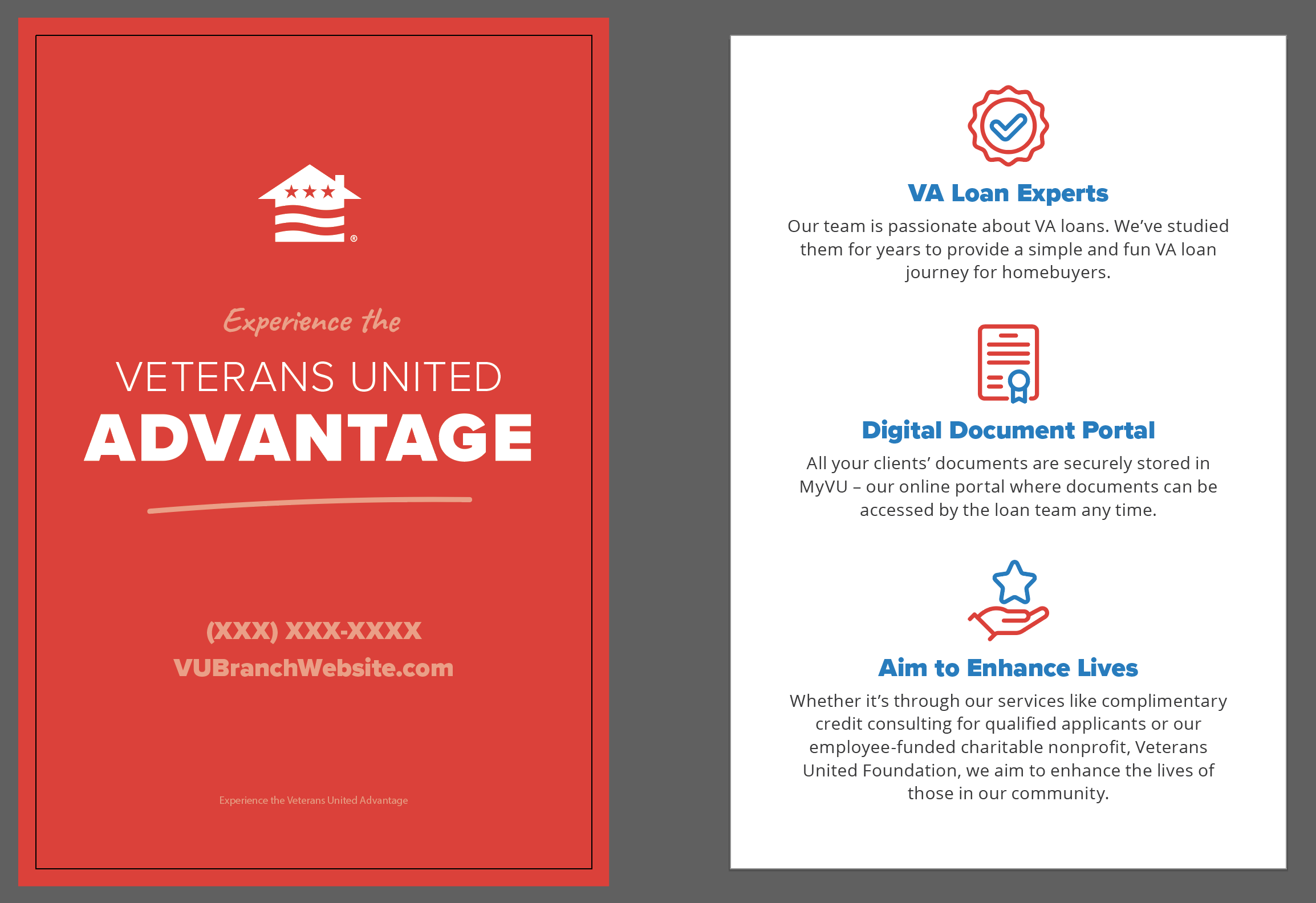 As the sole copywriter for all 25 of Veterans United’s retail branch locations, I worked with a broad array of personalities and dynamics within the Veterans United portfolio.